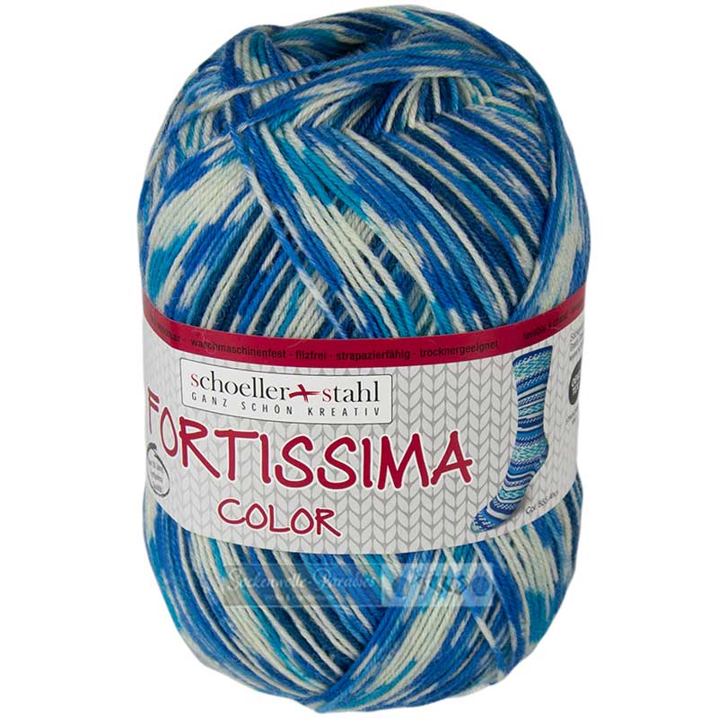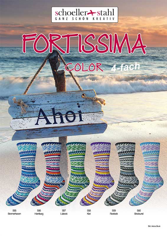 Fortissima Ahoi - классическая 4хниточная носочная пряжа с красивым принтом, который выглядит как жаккард.