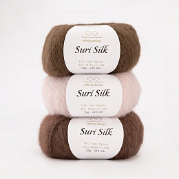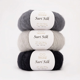Suri silk - тонкая пушистая пряжа с богатым составом: нежнейшая сури-альпака и малберри шелк.