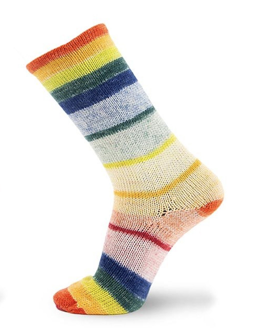 Ее игривый цветовой эффект сочетает в себе смелые полосы с гармоничным градиентом, что делает его идеальным для вязания уникальных носков.