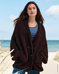 Из нее получаются красивые фактурные шарфы, обнимательные кардиганы, стильные жилетки.