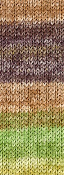 Cosima привлекает внимание своей палитрой: каждый моточек сочетает в себе несколько цветов, которые выкладываются в яркое полосатое полотно, где цвета постоянно сменяют друг друга без слишком резких переходов. Изделие с таким необычным рисунком обязательно станет главной фишкой образа и поднимет настроение его обладателю и, конечно, всем окружающим.