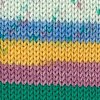 Главной особенностью данной пряжи является ее окрашивание: нить в полотне сама собой выкладывается полосками, перемежаясь с полосками молочного цвета и более темными крапушками. Ширина полосок средняя, чем больше ряд, тем тоньше будет полоска.