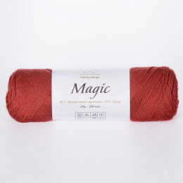 Magic - прекрасное исполнение носочной пряжи. В составе мериносовая шерсть и нейлон. Меринос, мягкий и приятный, обеспечит тепло и нежность прикосновения, нейлон - стабильность и износостойкость нити.
