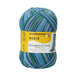 Mountains&Fjord – 4х- ниточная пряжа секционного крашения с тематическим окрашиванием в скандинавском стиле. Название говорит само за себя: горы и фьорды. Именно онивдохновили Арне и Карлоса - знаменитых носочных дизайнеров - на создание данной коллекции.
