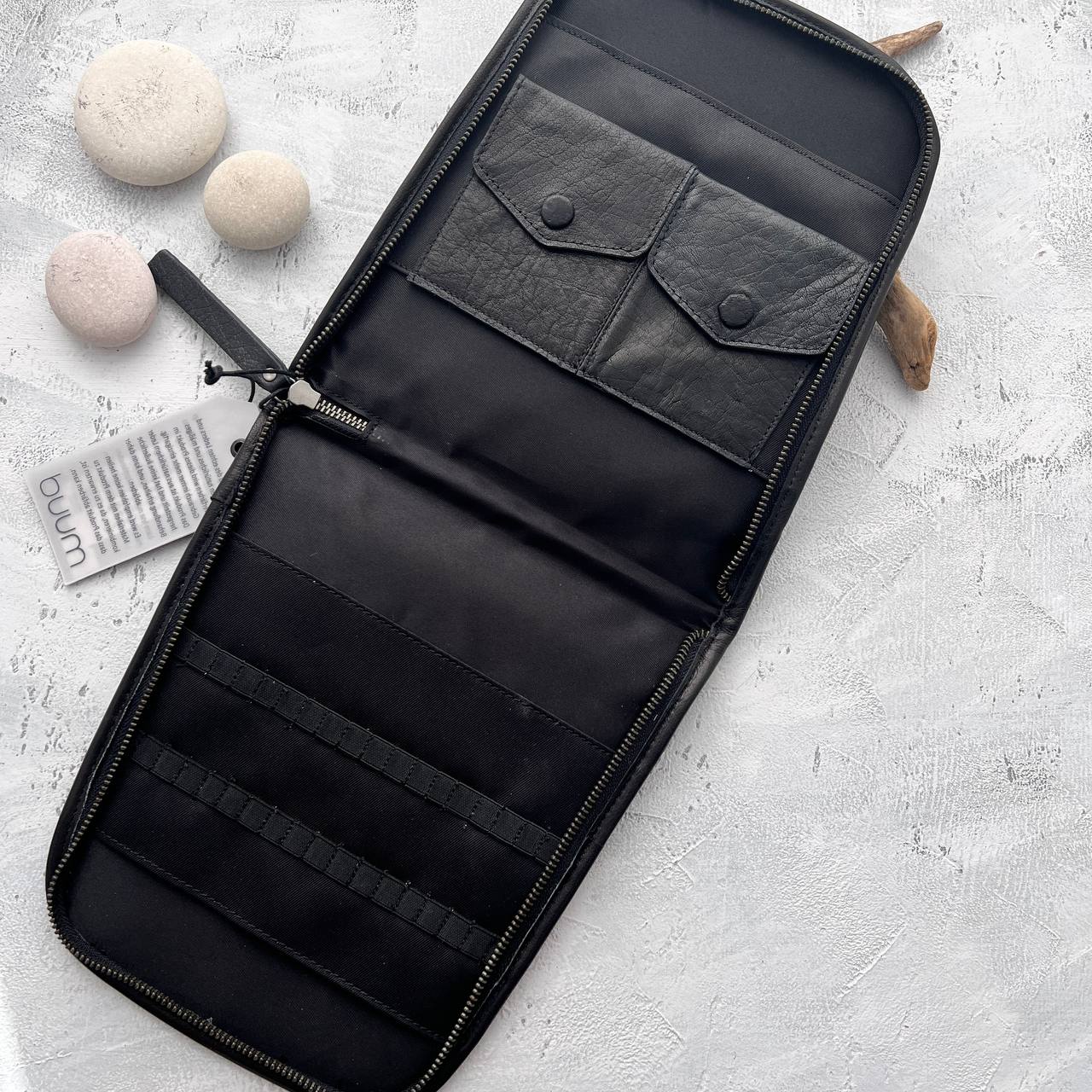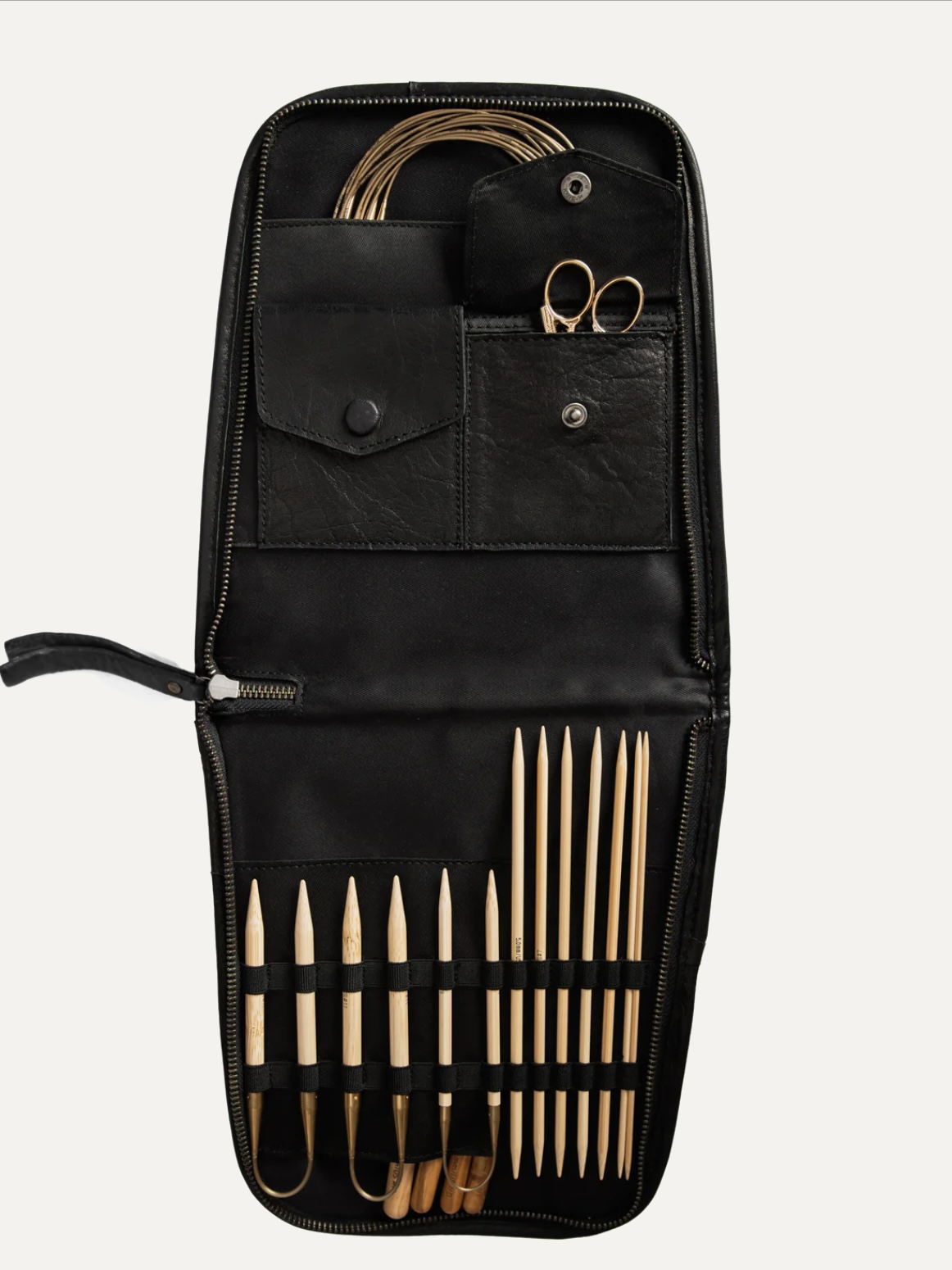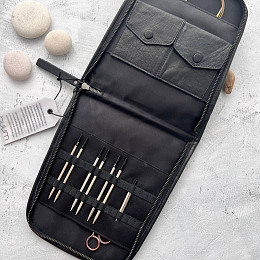 Храните свои вязальные спицы и аксессуары с помощью кожаного органайзера премиум-класса Trondheim.