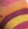 Нить при вязании сама выкладывается в полоски средней толщины, красиво переходит от одного цвета к другому.
