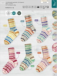 Данная пряжа идеальна на носки, рисунок выкладывается переходами цвета и узора. Спокойная пастельная гамма с небольшими всплесками цвета.