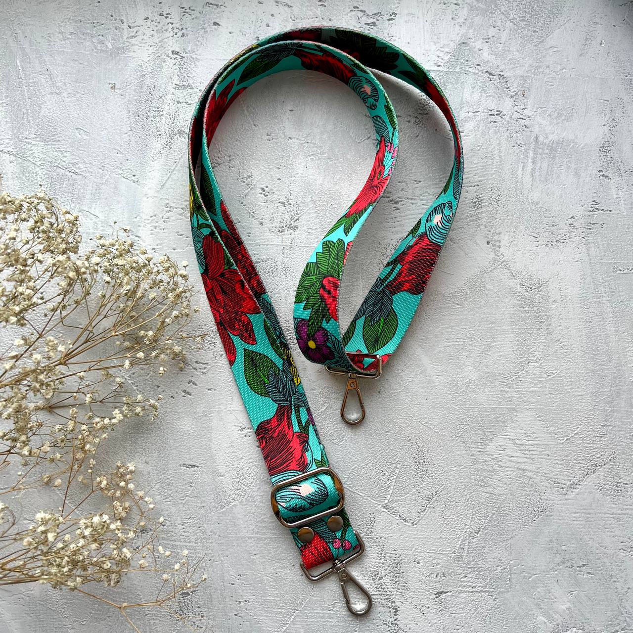 Ремень-праздник, с ярким цветочным принтом.
