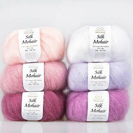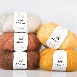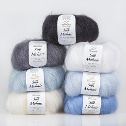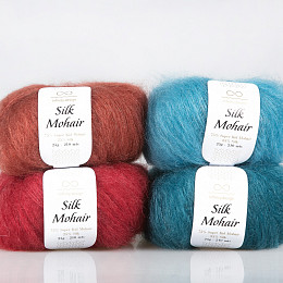 В составе данной нити 25% шелка и 75% нежнейшего супер кид мохера. Она очарует вас. Кид мохер отличного качества красиво скручен с шелковой основой. Нить пушистая, воздушная, невероятно мягкая. Это сочетание, а также широкая палитра от пастельных до насыщенных цветов, не оставит вас равнодушными.