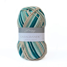 Благодаря секционному окрашиванию пряжа выкладывается в неравномерные полоски.
